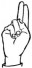 На ћирилици написано МОМИРКА КРНЧЕВИЋ састоји се из 15 слова [?]. Исписано ћириличном једноручном азбуком за глувонеме:
